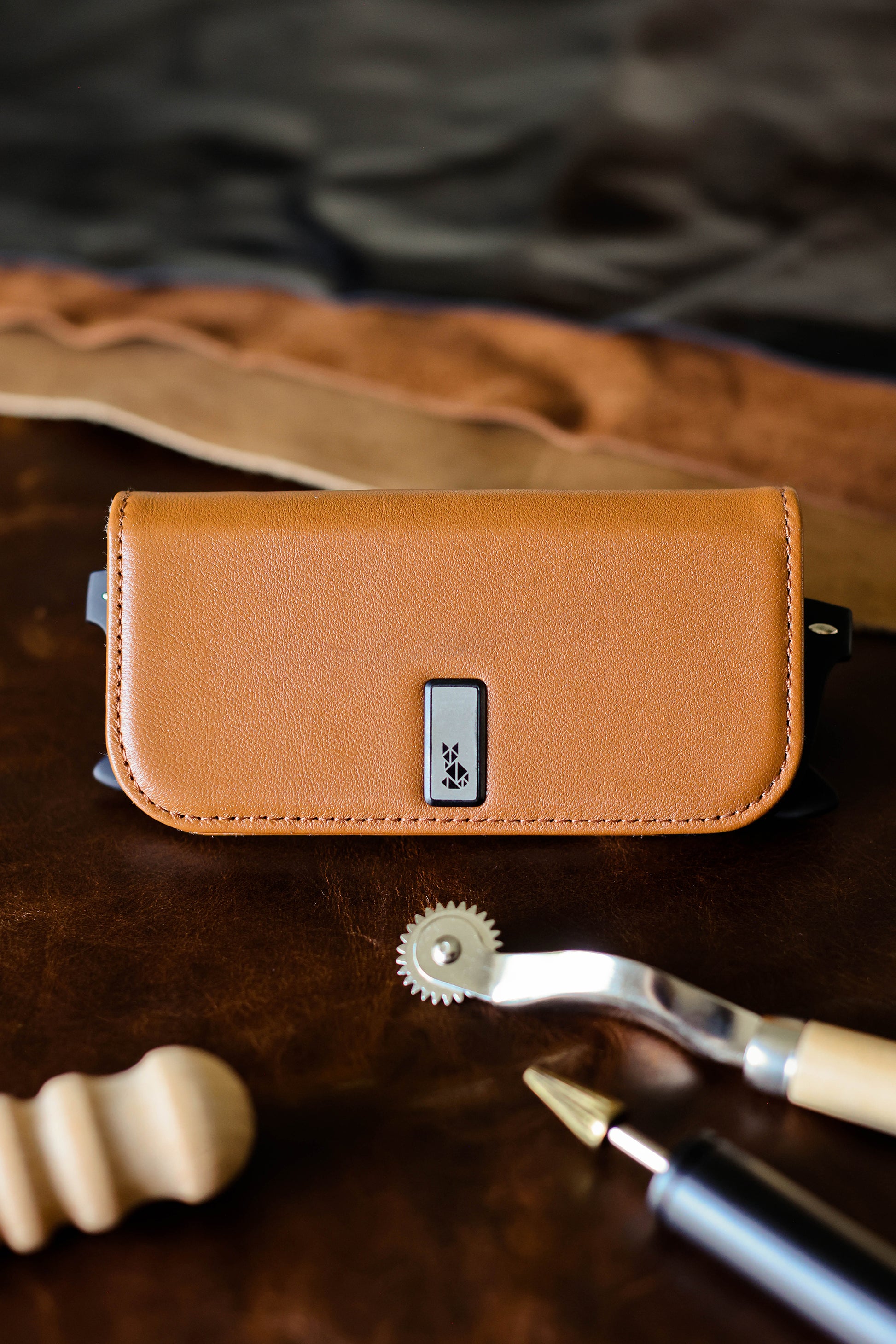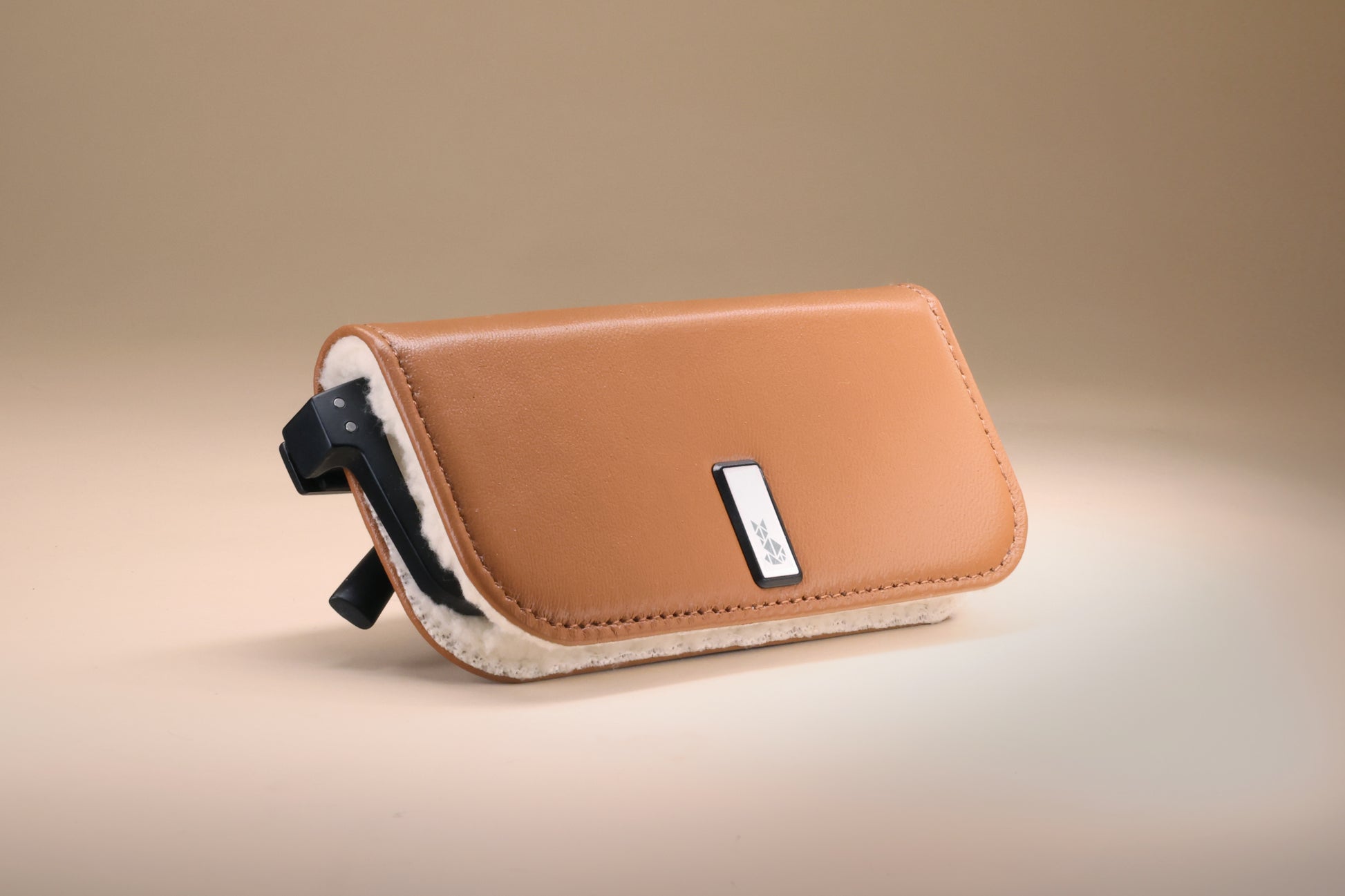The Lens Jacket is an ultra-lightweight solution to bulky and cumbersome clamshell glasses cases. It's much slimmer than a typical case but more protective than a sleeve. The product is made from real sheepskin leather and fuzzy cotton liner and uses two strong magnets to hold and protect your glasses. Slips into your pocket, purse, or backpack with ease and a footprint you’ll barely notice.